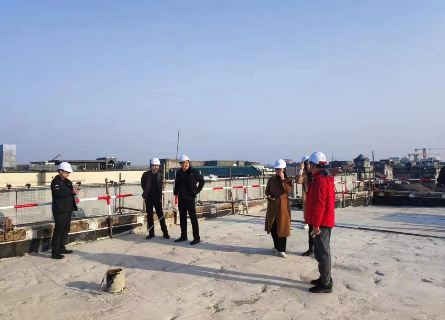 調(diào)研結(jié)束后,調(diào)研組一行立即到C3樓頂進行現(xiàn)場溝通,對項目提出要求: